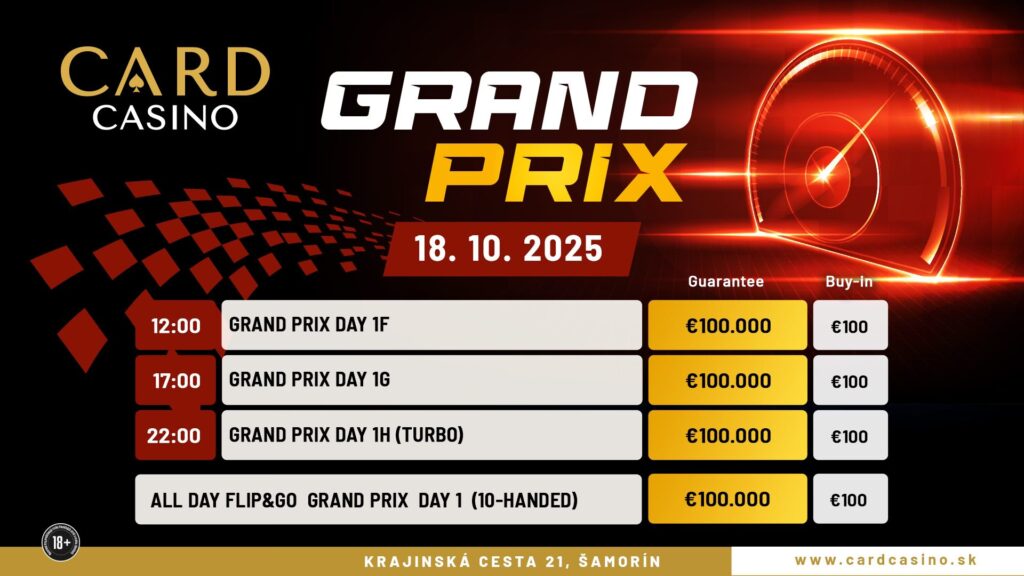 Heute geht es im Card Casino SK mit drei weiteren Starttagen für das €100 Grand Prix Main Event weiter – Tag 1F um 12:00 Uhr, 1G um 17:00 Uhr und Tag 1H Turbo um 22:00 Uhr.
