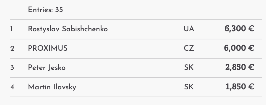 | Final Day | 478 | 49 | Jakub Neubauer (SK): 3.802.000 |