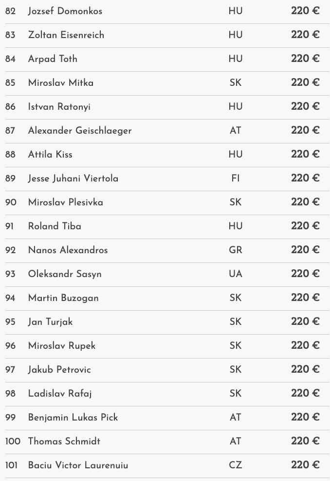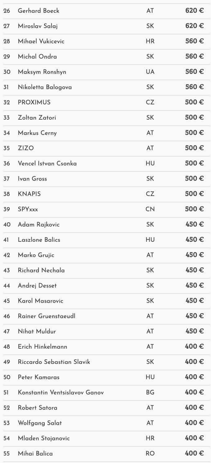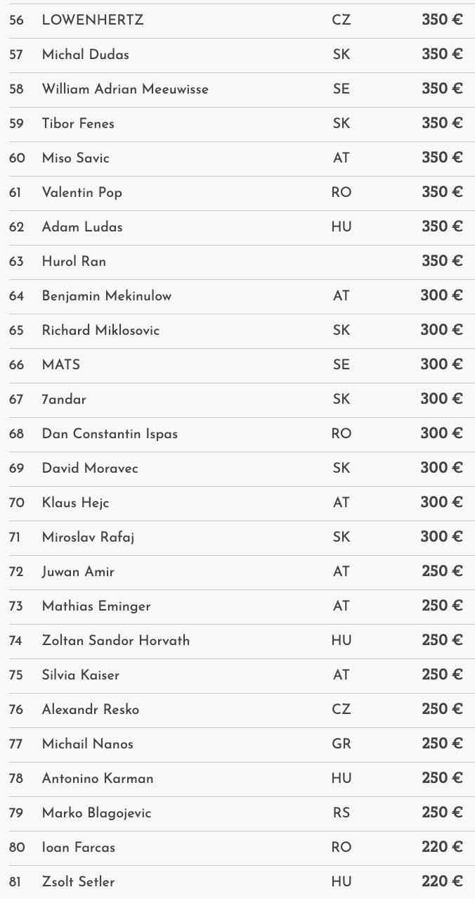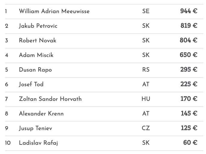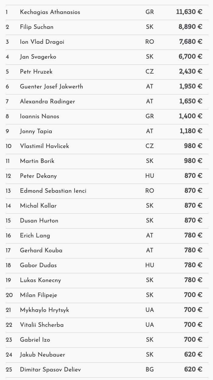 Runner-Up wurde Filip Suchan aus der Slowakei für €8.890.