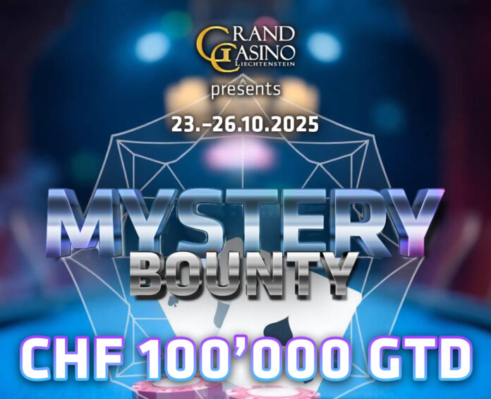 Im GC Pokerroom wird zwischen Donnerstag 23. und Sonntag 26. Oktober ein CHF 150+150+30 Mystery Bounty mit vier Startflights und zwei Spieltagen gezockt.