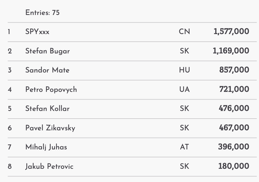 | 1A | 81 | 8 | Gabor Laszlo (SK): 1.667.000 |