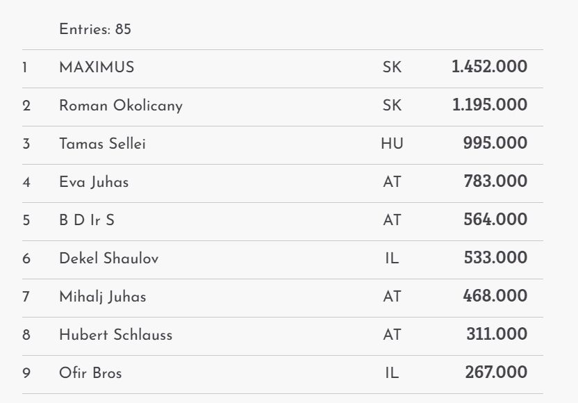 1A | 81 | 8 | Gabor Laszlo (SK): 1.667.000 |