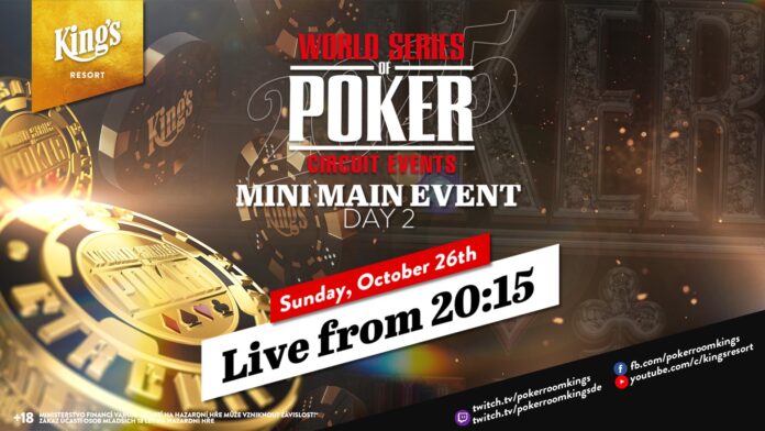 Am Sonntag gibt es ab 20:15 Uhr live aus dem King’s Resort Rozvadov, den Livestream vom Tag 2 des €300 World Series Of Poker (WSOP) Circuit NLH Mini Main Events (Ring-Event #2)!