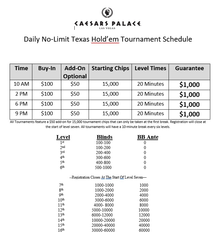 Jetzt hat der Caesars Palace auf seinen Social Media Seiten die umgehende Neueröffnung verkündet. Dabei wurden nicht nur die oft kritisierten unbequemen Stühle gegen komfortable Sitze ausgetauscht und (bislang 8 von 20) alte TVs gegen neue 65“ Screens ausgetauscht. Auch die Farbgebung und die für Casinos auf der ganzen Welt farbtechnisch so „lauten“ Teppiche haben einen Austausch erfahren. Das Feedback von Gelegenheits- und Profi-Spielern war bislang gut – ein Besuch dort könnte sich also lohnen. Noch viel mehr, wenn man auf das neue Schedule der Daily Tournaments (4 MTT mit Buy-Ins zwischen $120 und $160), die angebotenen Cash Games zwischen $1/$3 und $5/$10+ oder die angebotenen Comps ($3/Stunde) schaut.