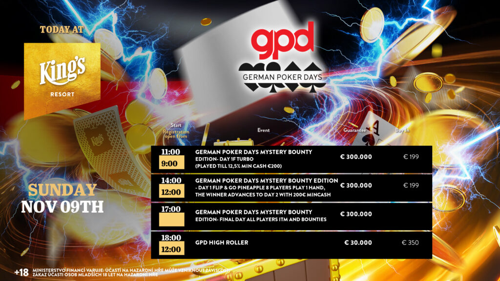 €199 Germany Poker Days Main Event Mystery Bounty Edition – Day E (€300.000 GTD)