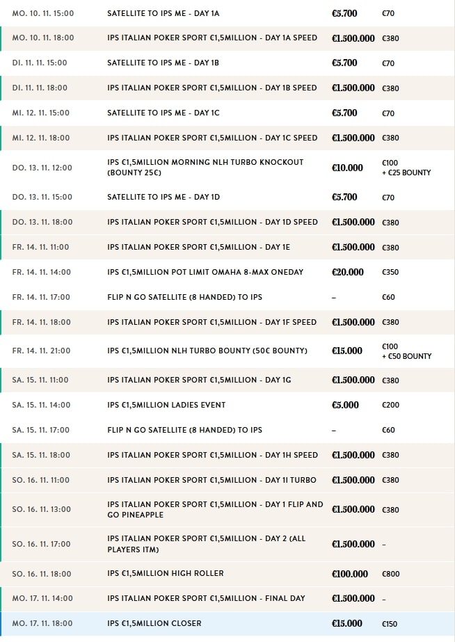 Mit 190 (155+35) Entrys, die das Startgeld von €350 bezahlten, war das Turnier gut besucht und statt der Garantie von €30.000 ging es um stolze €55.860 Preisgeld.