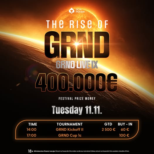Heute stehen im GCA Pokerroom 2.0 zwei Turniere an. Um 14 Uhr geht es mit dem €53+7 GRND Kickoff I los, ab 17 Uhr geht es dann mit Tag 1b des GRND Cup samt einer Garantie von €30.000 weiter.