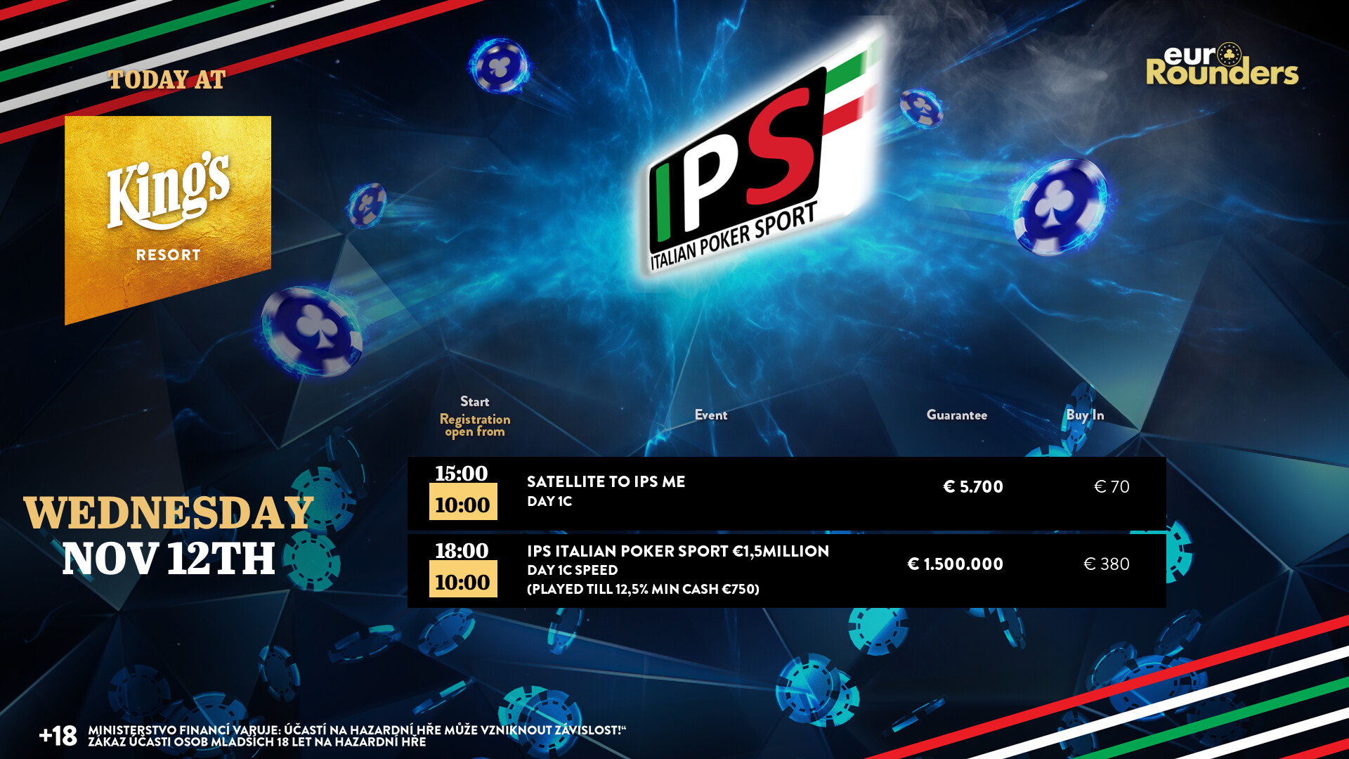 Am Dienstag ging es im King’s Resort Rozvadov in den zweiten Startflight des €380 Italian Poker Sport (IPS) Festival powered by euroRounders!
