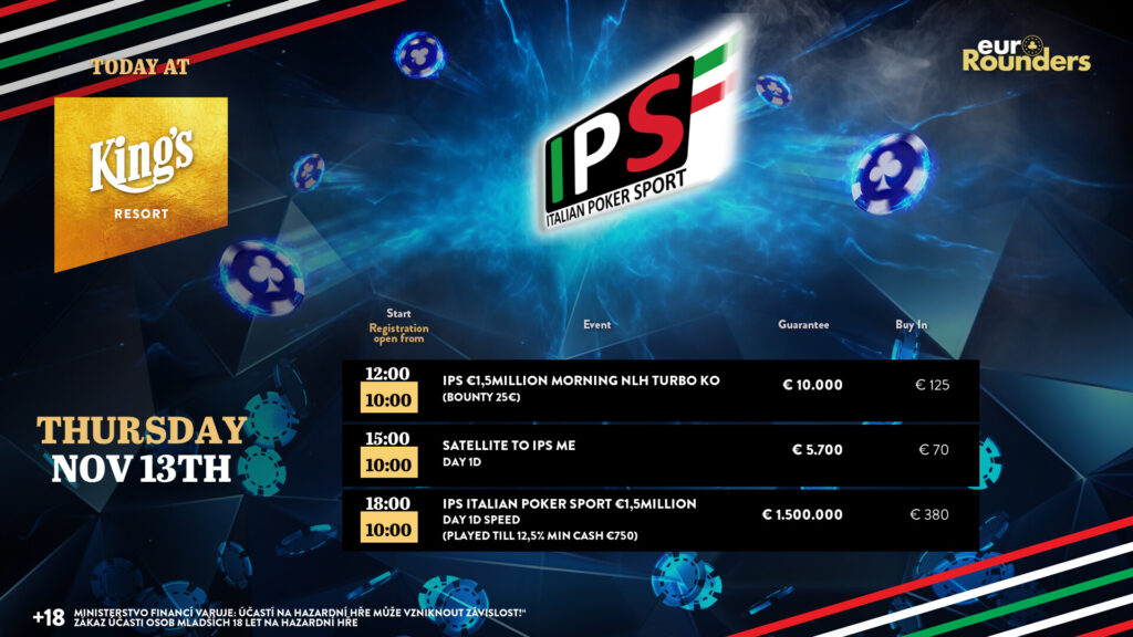 Am gestrigen Mittwoch wurde im King’s Resort Rozvadov der dritte Startflight des €380 Italian Poker Sport (IPS) Main Events powered by euroRounders angeboten.
