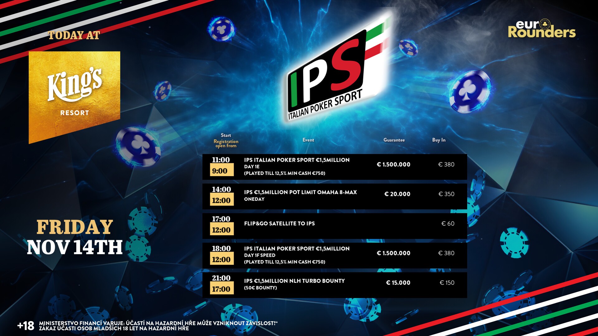 Das €380 Italian Poker Sport (IPS) Main Event powered by euroRounders ging am Donnerstag im King’s Resort Rozvadov in die nächste Runde.