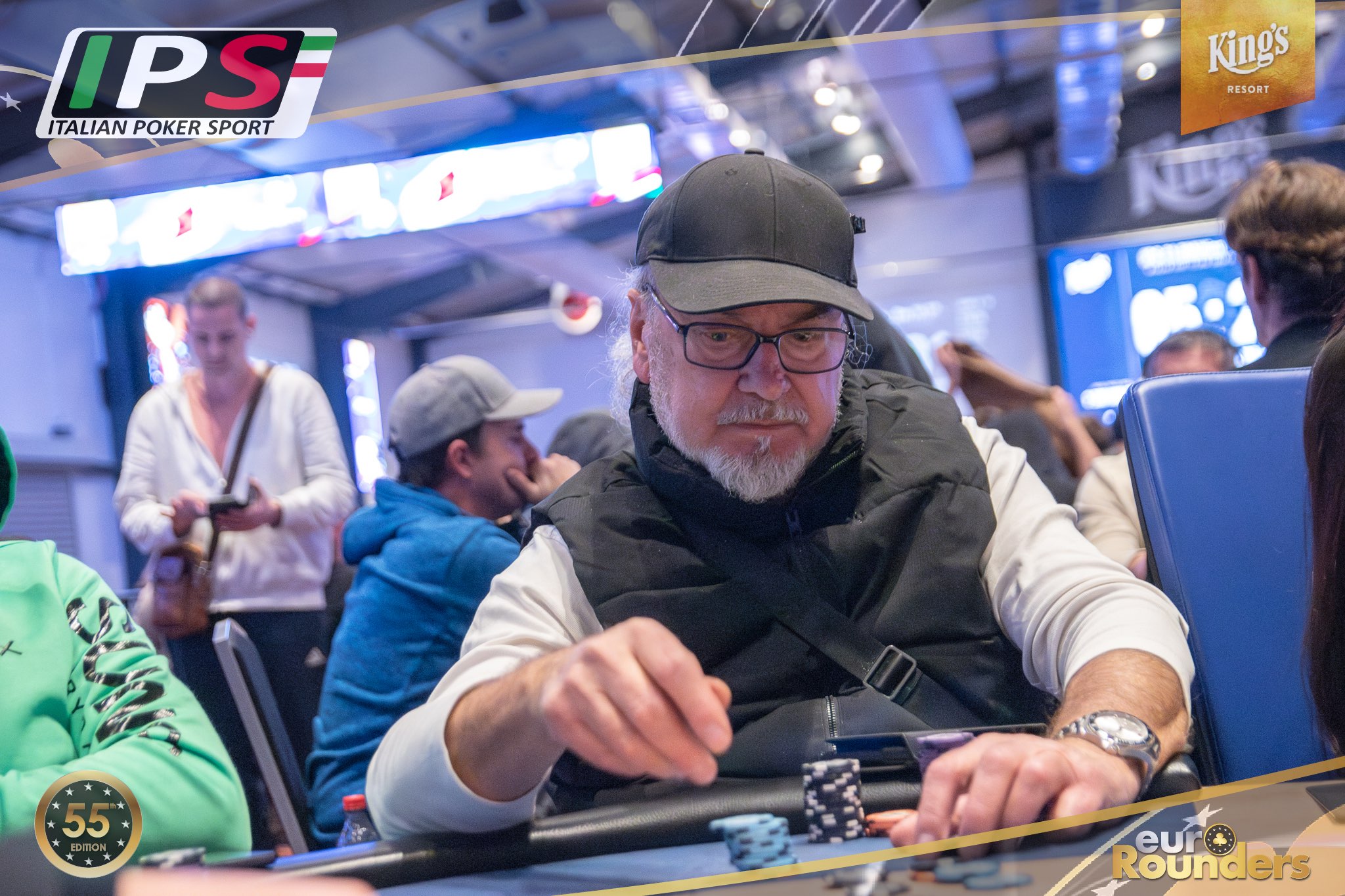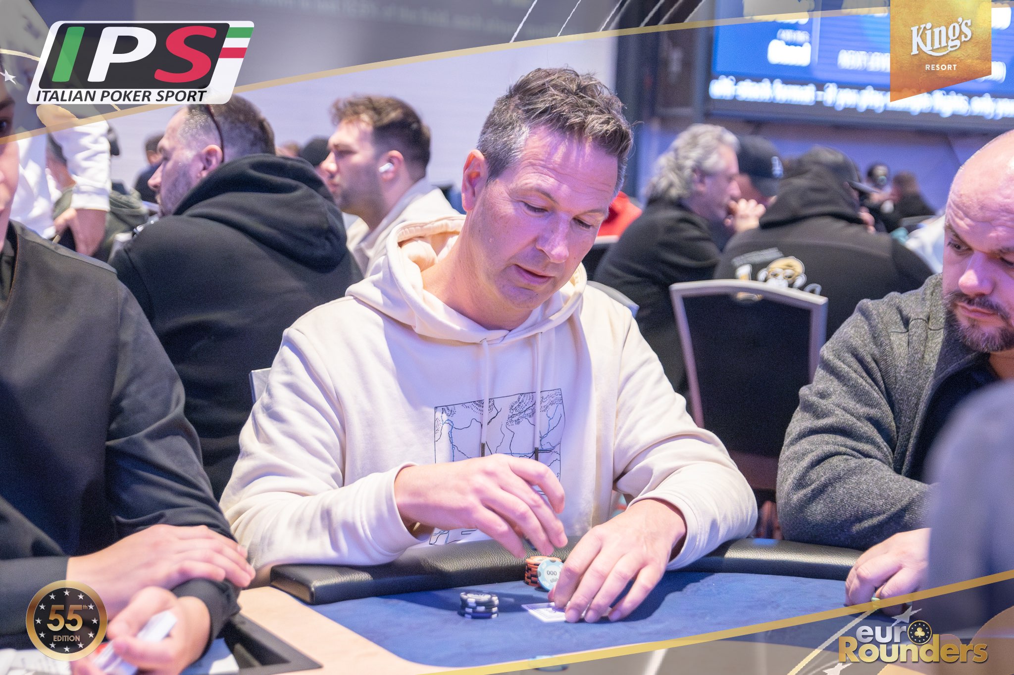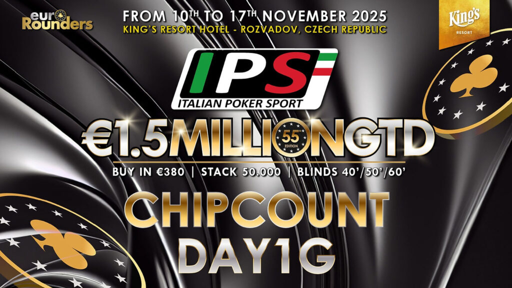 Beim Italian Poker Sport Main Event werden insgesamt 11 Qualifikationsflights ausgetragen (9 Starttage in Rozvadov, 1 Starttag in Prag, sowie ein 8-handed Flip and Go). Das Startgeld beträgt jeweils €380 (15% Steuer+Fee). Dafür erhält man 50.000 Starting Chips und 40 Minuten Spielzeit pro Level (30 Minuten in den Speed und 12 in den Turbo Flights). 2- Re-Entrys sind während der 10 Level Late Registration möglich. Aus jedem Starttag qualifizieren sich die besten 12,5% für Tag 2 (SO, 17:00 Uhr) des 3-Day Events. Aus dem mit mindestens €1.500.000 garantierten Preispool haben alle Spieler*innen, die es in Tag 2 schaffen, bereits €750 Mincash sicher. Auf den Chipleader eines jeden Starttages wartet außerdem ein Chipleader-Bonus in Form von King’s Main Event Tickets im Wert von €1.150. Im Preispool enthalten sind außerdem 10 Packages à €3.000 für die King’s Million European Poker Championship (KM EPC). – Satellites für das IPS M.E. finden im Pokerroom King’s für €70 statt.