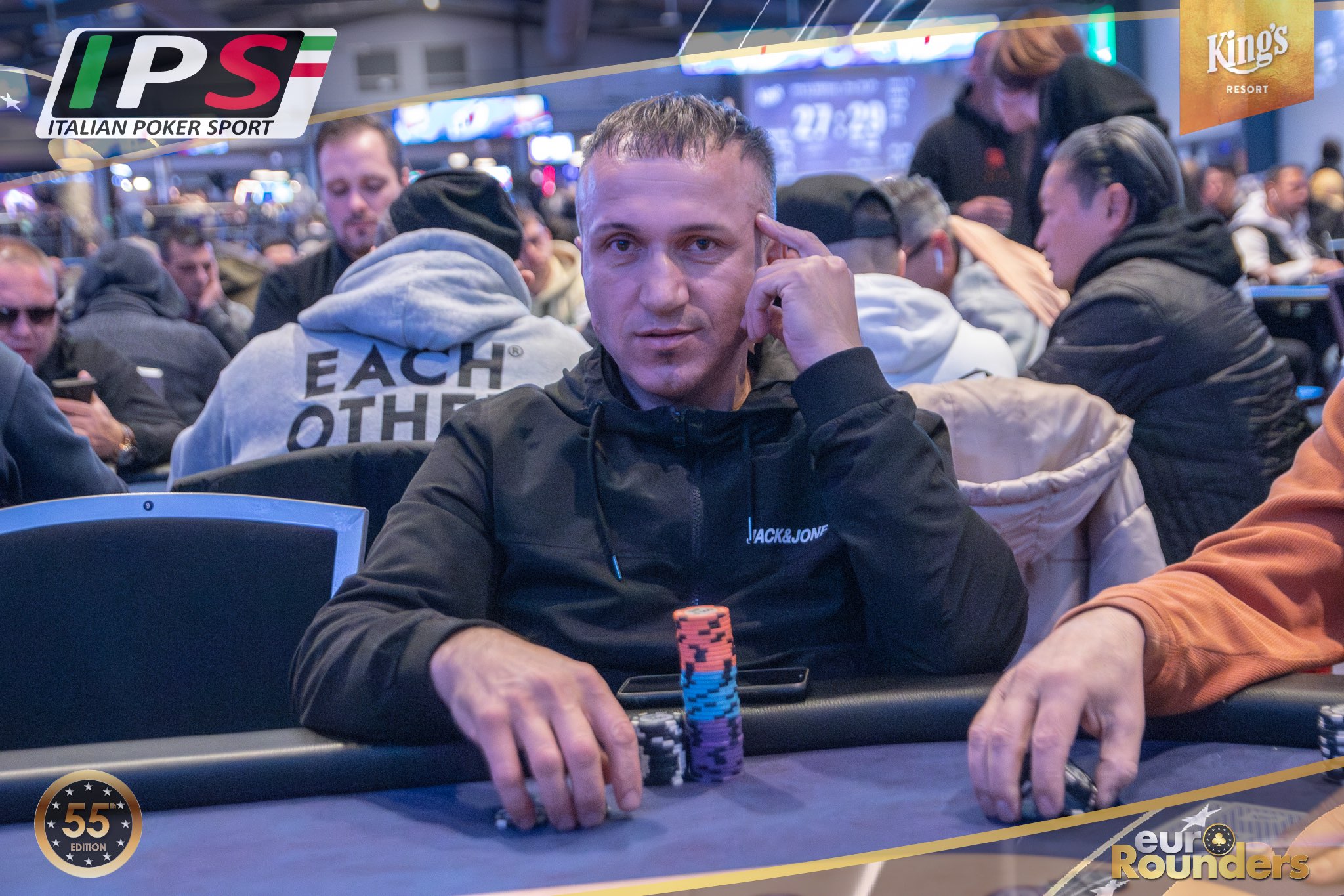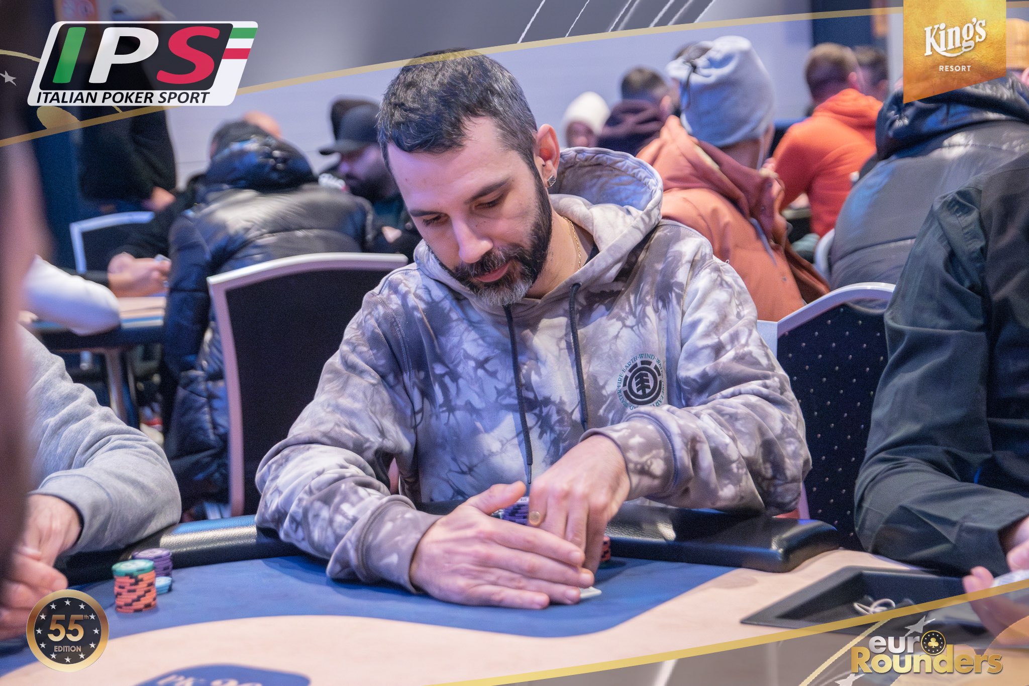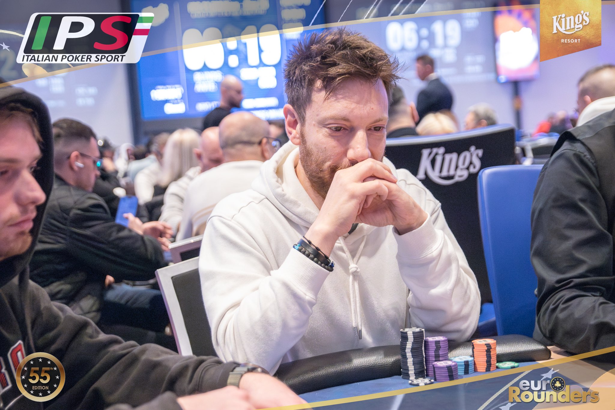 Beim Italian Poker Sport Main Event werden insgesamt 11 Qualifikationsflights ausgetragen (9 Starttage in Rozvadov, 1 Starttag in Prag, sowie ein 8-handed Flip and Go). Das Startgeld beträgt jeweils €380 (15% Steuer+Fee). Dafür erhält man 50.000 Starting Chips und 40 Minuten Spielzeit pro Level (30 Minuten in den Speed und 12 in den Turbo Flights). 2- Re-Entrys sind während der 10 Level Late Registration möglich. Aus jedem Starttag qualifizieren sich die besten 12,5% für Tag 2 (SO, 17:00 Uhr) des 3-Day Events. Aus dem mit mindestens €1.500.000 garantierten Preispool haben alle Spieler*innen, die es in Tag 2 schaffen, bereits €750 Mincash sicher. Auf den Chipleader eines jeden Starttages wartet außerdem ein Chipleader-Bonus in Form von King’s Main Event Tickets im Wert von €1.150. Im Preispool enthalten sind außerdem 10 Packages à €3.000 für die King’s Million European Poker Championship (KM EPC). – Satellites für das IPS M.E. finden im Pokerroom King’s für €70 statt.