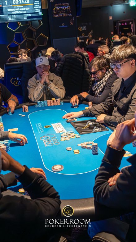 In die Entscheidung geht es bei Blinds 25.000/50.000 (50.000 BB Ante) um 14:00 Uhr im GC Pokerroom im Fürstentum Liechtenstein – die Uhr läuft in den Leveln 60 Minuten!