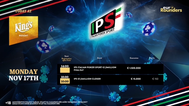 Das Main Event des Italian Poker Sport (IPS) Main Event powered by euroRounders im King’s Resort im tschechischen Rozvadov läuft auf Hochtouren! Währenddessen wurde ein spannendes High Roller ausgetragen, bei dem am Sonntagabend ein Sieger ausgespielt wurde.