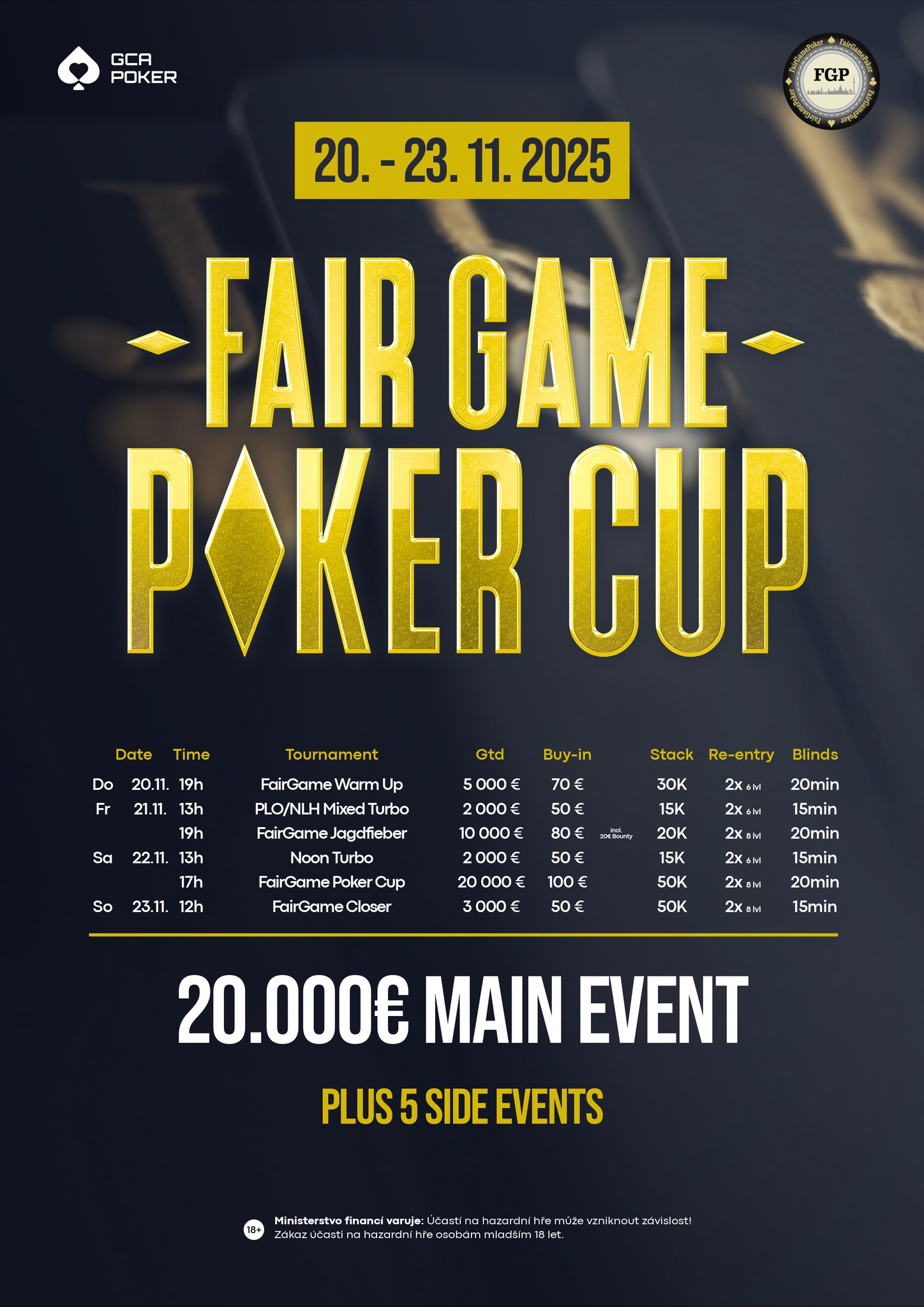 Im Grand Casino Aš (GCA) fiel gestern der Startschuss in die Pokerwoche und prinzipiell für das 4-tägige FairGamePoker Festival powered by FairGame Poker mit dem traditionellen Mittwochs-Event im GCA, dem €50 Kickstarter.