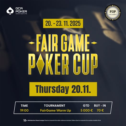 Das FairGamePoker Festival selbst bietet insgesamt sechs Turniere vom 20. bis 23. mit €42.000 an Garantien – davon entfallen allein €20.000 GDT auf das Main Event am Samstag.