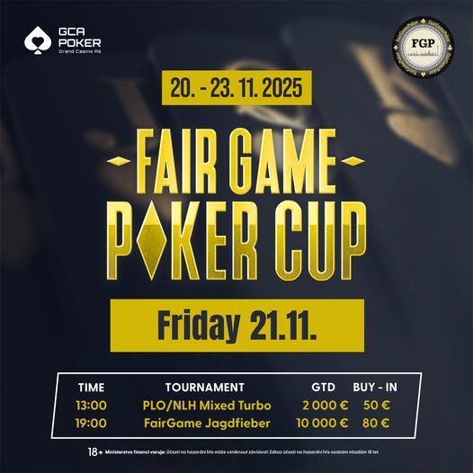 Am Donnerstag startete der Fairgame Poker Cup powered by Fairgame Poker im Grand Casino As (GCA). Dabei stand das Fairgame Warm Up als Auftaktevent für die GCA Regulars und die Gäste aus der Region Hannover auf dem Turnierplan. Am Ende des Tages sollte sich ein Trio die größten Teile aus dem €6.180 Preispool fair teilen!