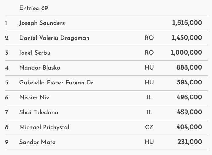 1D | 57 | 8 | Tibor Gedei (HU): 1.377.000 |