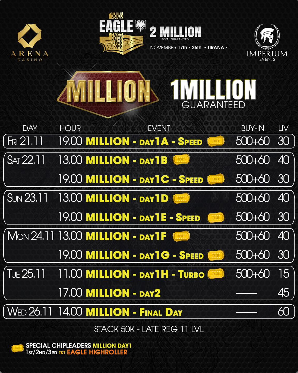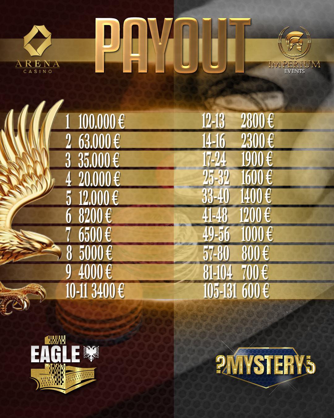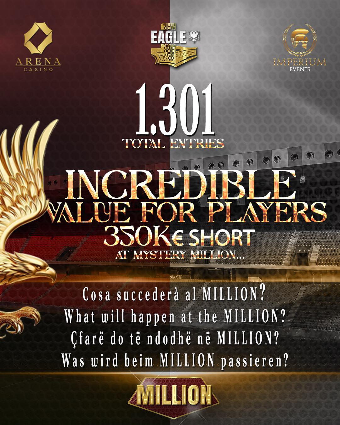 Beim Eagle Poker Festival im Arena Casino Tirana, powered by Imperium, ist das Mystery 1Million in Tag 2 angekommen und musste am Ende ein gigantisches Overlay verzeichnen, was krasse extra Value für die Spieler hervorbringt. Zugleich ist das 1Million gestartet!