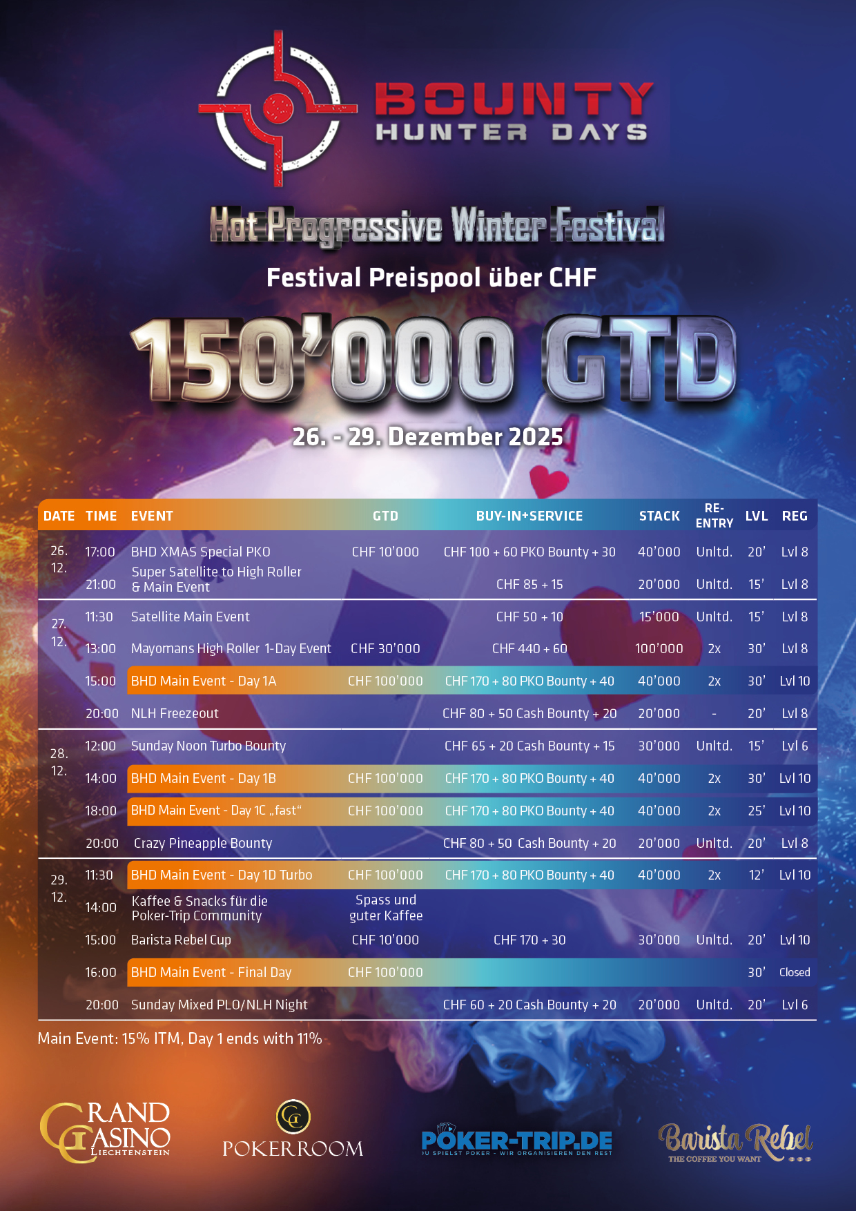 Wie bei den regulären Turnieren üblich waren die Spieler*innen aus dem D-A-CH-L zahlreich vertreten. 4-mal war die Schweiz, 2-mal Deutschland, Griechenland und 2-mal Österreich am Final Table vertreten. Über 4-stellige Payouts konnten sich „Tribun“ (AUT,5., 1.140 CHF), Nadja Sutter (SUI, 4., 1.455 CHF) und „Borat90“ (GER, 3., 1.900 CHF) freuen. Als es in das deutsch-österreichische Heads-Up zwischen „Notis GR“ (GER) und „Mansti“ (AUT) ging, einigten sich die beiden auf einen Deal. So sorgte der Double Shoot Saturday für doppelte Siegerfreude. Bei „Mansti“ wurde sie mit 3.200 CHF gekrönt, für „Notis GR“ kamen zu den Bragging Rights für den GCLI-Turniersieg nich 3.780 CHF in Cash!