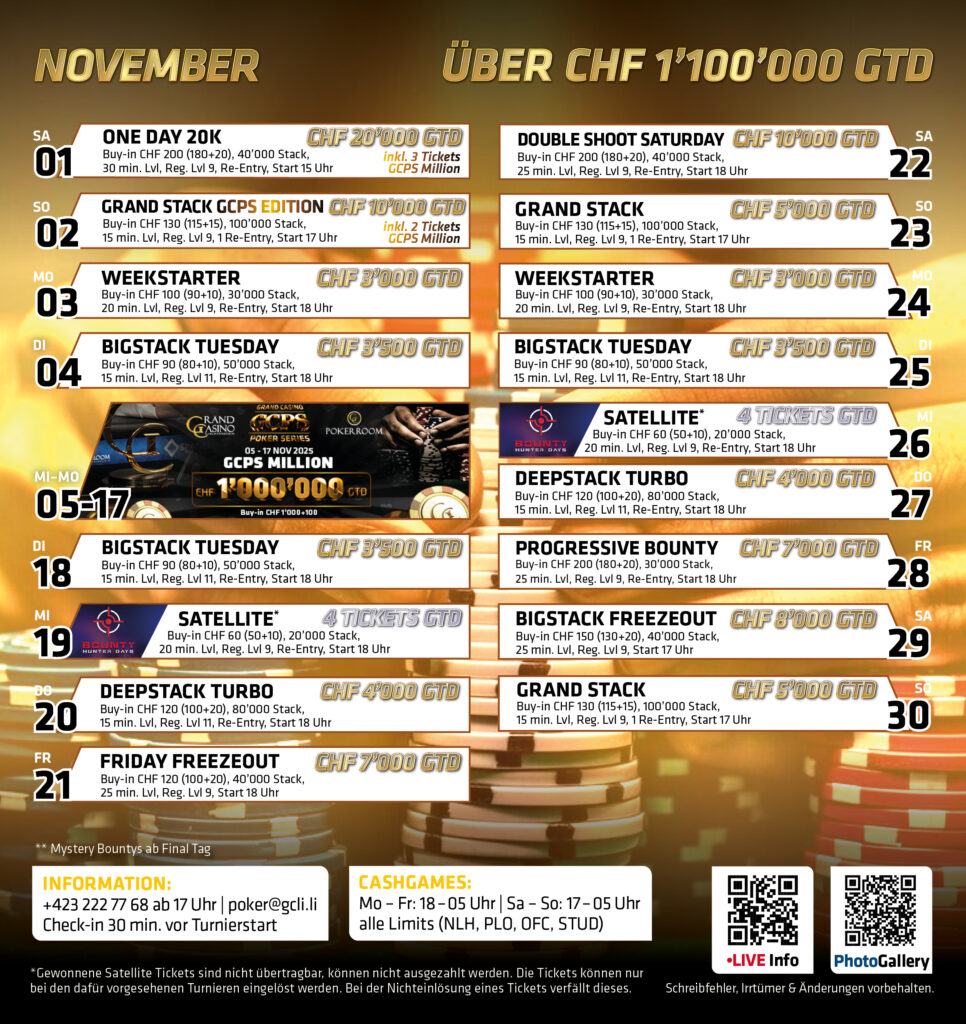 Am Samstagnachmittag stand der Double Shoot Saturday auf dem Pokerplan im Grand Casino Liechtenstein (GCLI). Das Wochenturnier war gut besucht und sollte am Ende mit geteilten Top-Payouts für doppelte Freude sorgen!