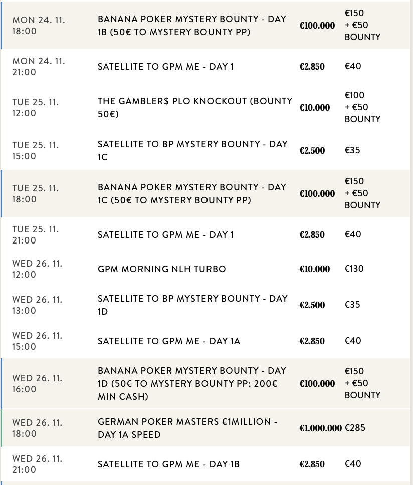 Tag 1C sollte mit 109 Spieler*innen und 47 Re-Entrys der bis dato bestbesuchte Starttag werden. Unter die besten 12,5% der Teilnehmer*innen schafften es 7 Spieler*innen aus dem D-A-CH-L. Den größten Stack tütete dabei Daniel Sotirius Wehmer mit 928.000 Chips ein. Als Tag-1C-Chipleader sollte knapp vor ihm der Litauer Tomas Geleziunas übernachten, der aus auf einen Chipcount von 1.051.000 brachte.