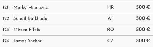 Die Payouts gingen auf Platz 124 bei €500 los, alle verbleibenden Spieler haben nun bereits €1.300 sicher.
