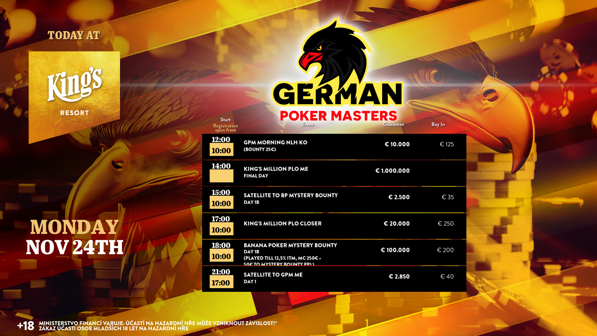 Das €1.100 King’s Million PLO Main Event im King’s Resort Rozvadov mit €1.000.000-Garantie steht vor der Entscheidung – 16 Spieler sind noch im Rennen um den Sieg!