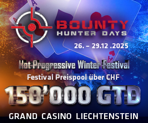 Das Bounty Hunter Days Hot Progressive Winter Festival findet vom 26. bis 29. Dezember statt und das Main Event garantiert CHF 100.000 bei vier Starttagen und einem CHF 170+80+40 Buy-in.
