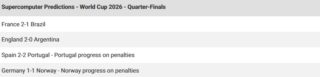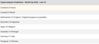 Laut Supercomputer-Prognose werden Senegal, Paraguay, Spanien, die Schweiz, Kroatien, Brasilien, Argentinien, England, Frankreich, Deutschland, Norwegen und Portugal die zwölf Gruppensieger sein. Die Mannschaft von Erling Haaland gilt mit zwölf Toren in drei Spielen als Favorit auf die meisten Tore dieser Runde.