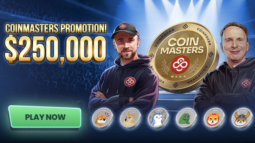 Die CoinMasters Promotion mit $200.000 an Preisen ist die beliebteste und bestbesuchte Promo des Crypto Poker Rooms. Allein Championship Final Table wird ein $100.000 Profi Vertrag ausgespielt. Zu den 7 Finalisten werden die ersten 5 Spieler gehören, die das komplette Set an 7 verschiedenen Münzen erspielt (oder ertauscht) haben, sowie 1 Influencer und unter allen CoinMasters Turnier Gewinnern noch 1 ausgeloster Spieler.