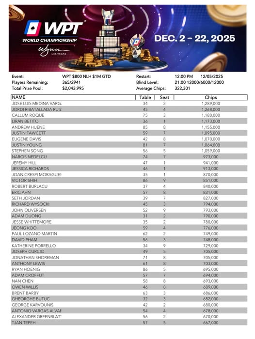 Die WPT Prime Championship, die vom 7. bis 12. Dezember stattfindet, garantiert ein $5 Millionen Preisgeld, und das bei einem Startgeld von $1.100. Insgesamt bietet die WPT World Championship ein Programm mit 78 Turnieren in 21 Tagen.