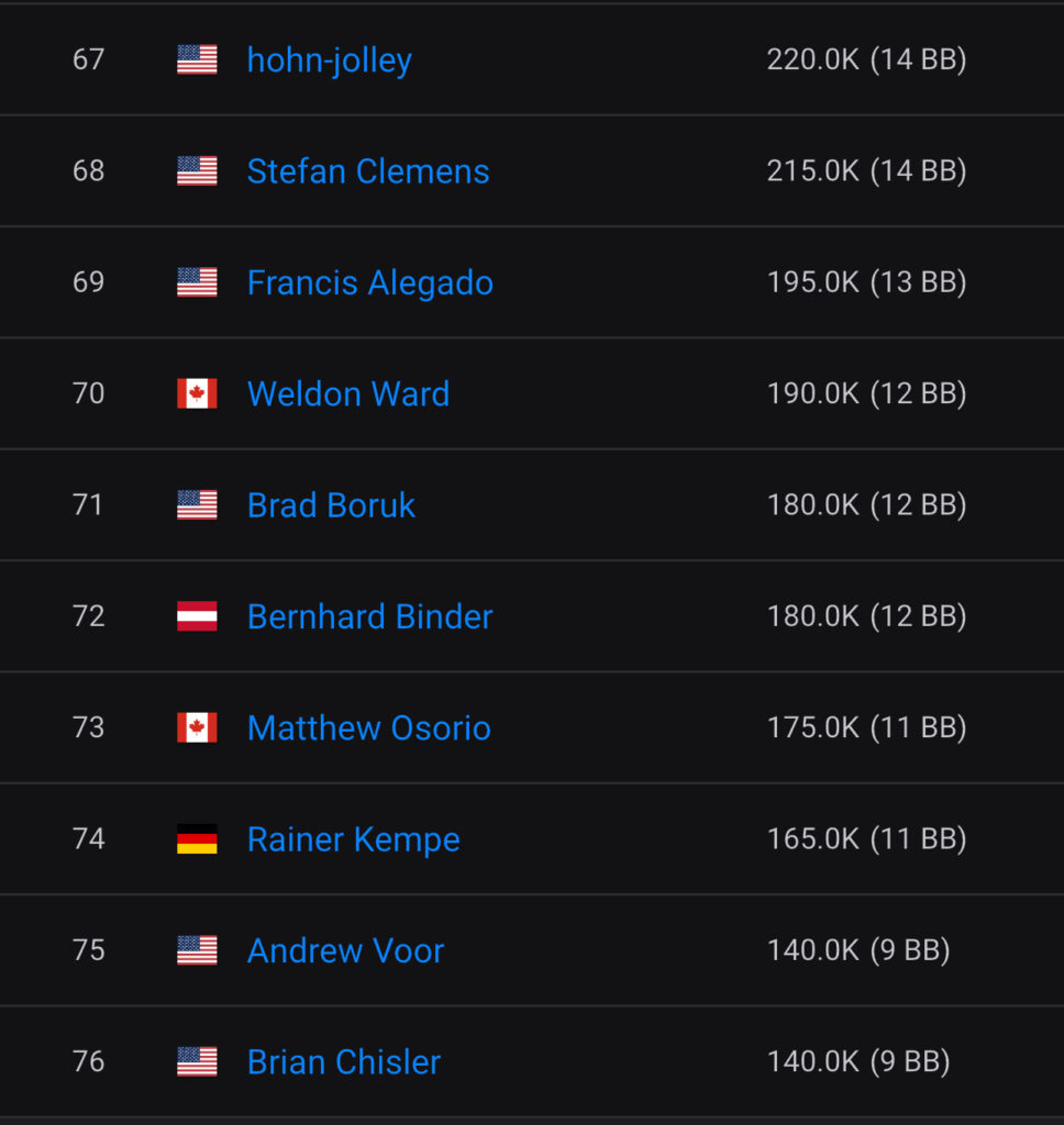 Aus DACH-Sicht sind noch im Rennen Rainer Kempe (DE), Bernhard Binder (AT), Hannes Jeschka (DE), Samuel Mullur (AT). Letzterer startet als Siebter in den Tag 2 und hat damit eine fantastische Ausgangsposition.