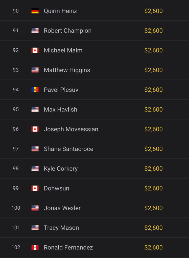 | 16-Dec | $10,000 | Event #15: The Closer NLH Turbo Bounty |