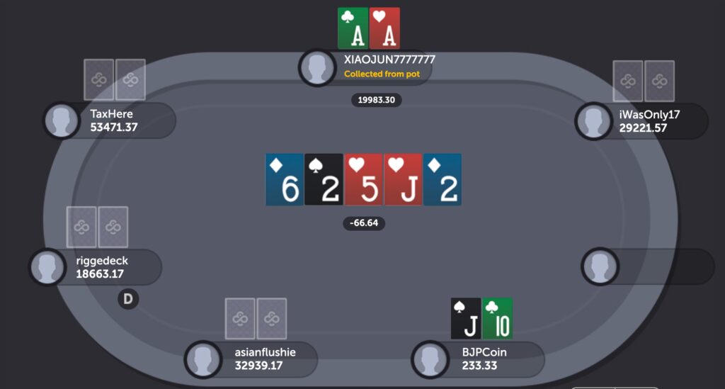 Schon in den ersten Händen wurde klar, dass hier gleich zwei Games in einem gespielt wurden. Während die 5 High Stakes CGWC Qualifikanten ihren durchaus aggressiven Stil herunterspielten, kam Bobby James frisch aus seinem High Stakes Heads-Up gegen Stanley Menzo scheinbar von einem anderen Planeten. Die Spielweise seiner Gegner bezeichnete er als „Nitfest“ und versuchte hochfrequent dem VIP Game und den anderen fünf einzuheizen. Mal mit mehr und öfter mit weniger Erfolg. – Nachdem er mit (JTs) und getroffenen Two Pair in Pocket Asse lief, beendete der CoinPoker Ambassador seinen VIP Game Auftritt vorzeitig!