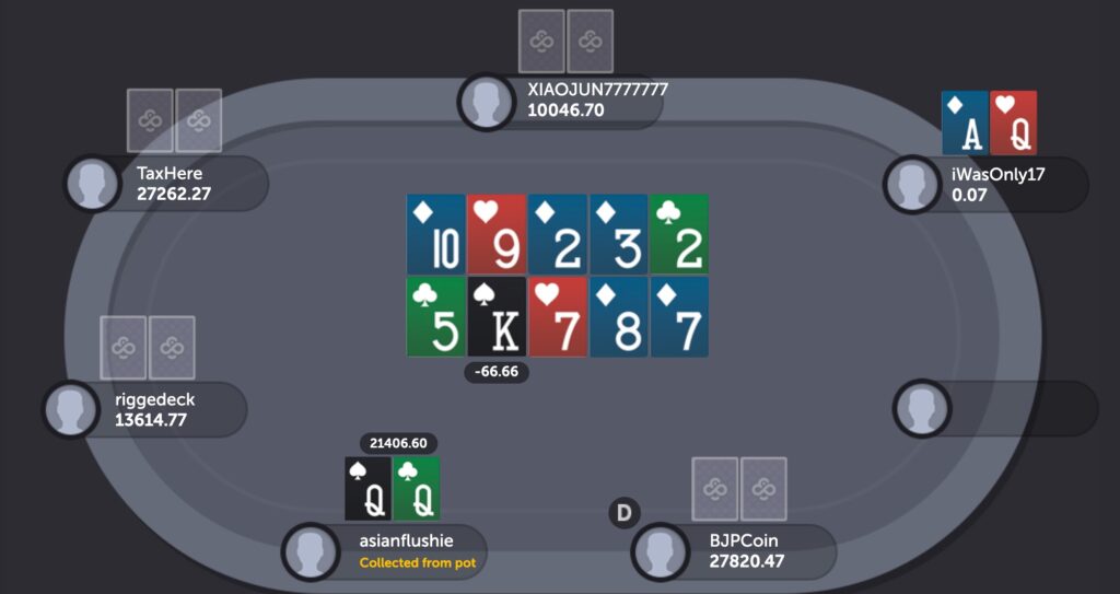 Seat 5: XIAOJUN7777777 (10532.9 in chips)