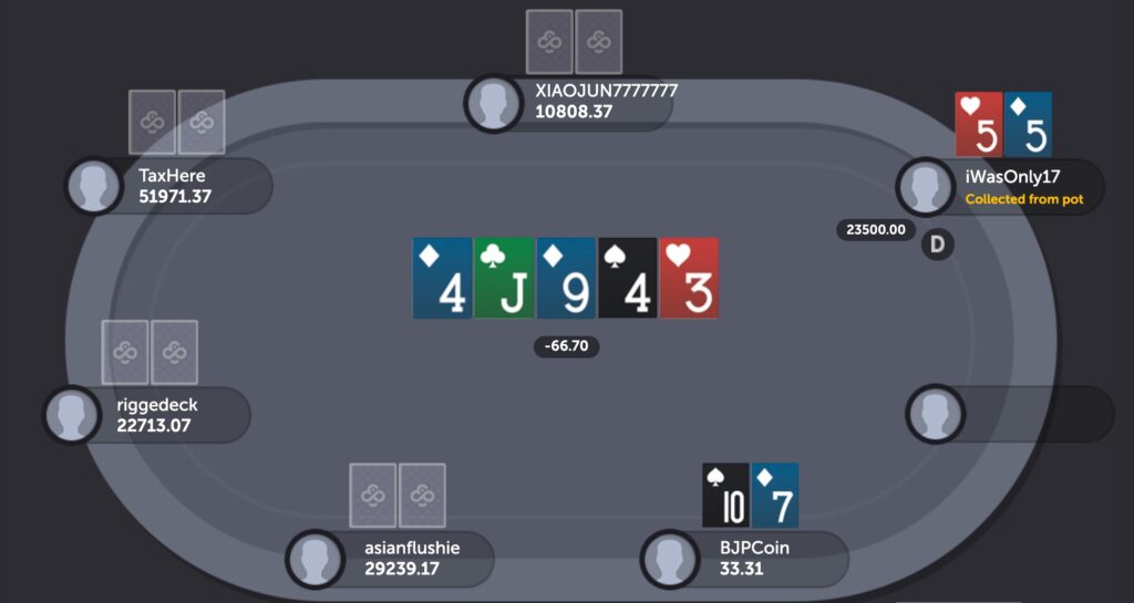 Seat 6: iWasOnly17 (10516.7 in chips)