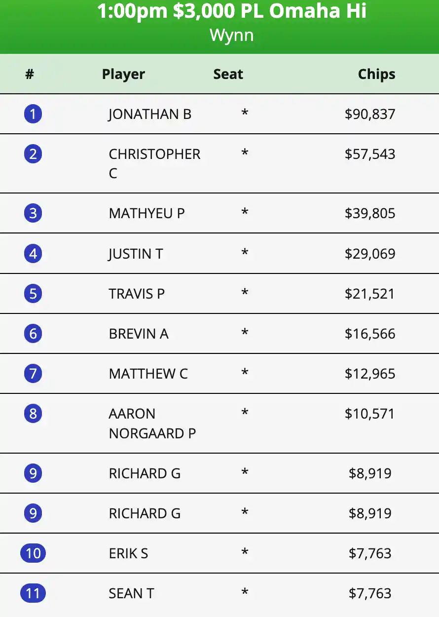 Das $1.100 PLO Turbo hatte 187 Entries und einen $182.325 Preispool, der auf 23 Plätze verteilt wurde.