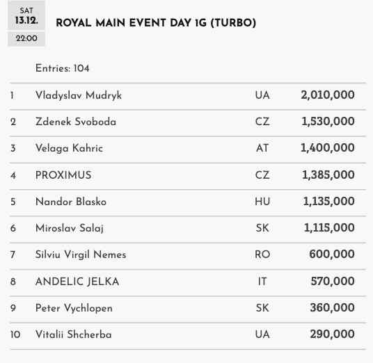 Im Card Casino SK in Samorin (vormals Card Casino Bratislava) ging es am Samstag beim €200 Royal Event heiß her – die Teilnehmerzahlen haben sich mehr als verdoppelt.