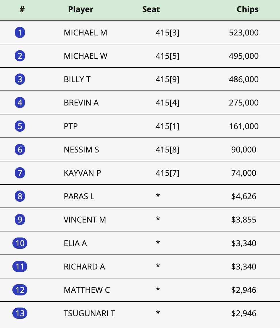 Michael M. hat derzeit mit 523.000 Chips die besten Chancen auf den Sieg.