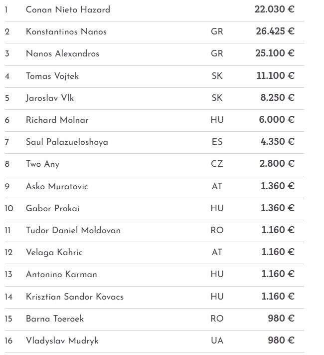 Offizieller Turniersieger wurde Conan Nieto Hazard, der €22.030 einstrich.