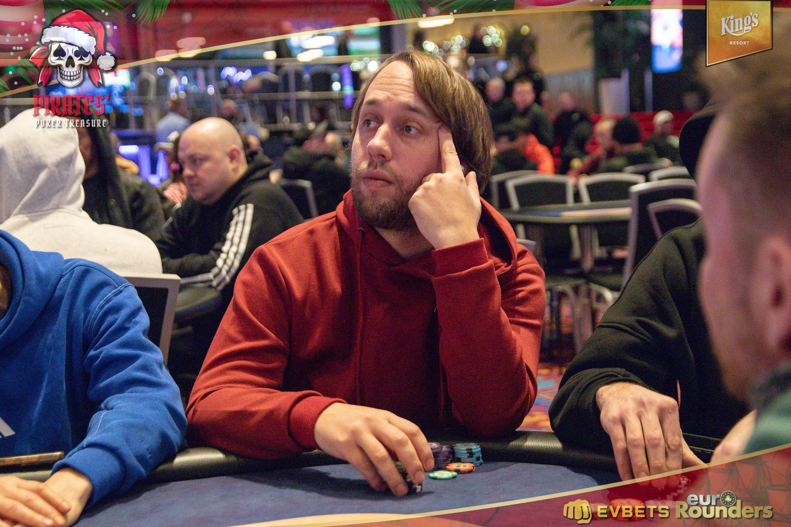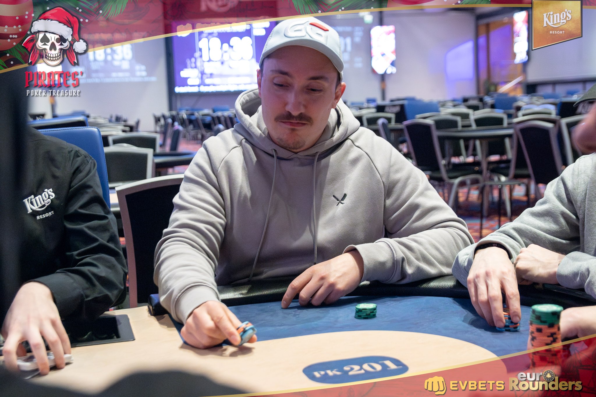 Über die Tag-2-Qualifikation und €600 Min-Cash konnten sich „Eric Arthur Blair“ (GER, 164.000), „Kasimir Sura“ (GER, 212.000), „Felix Krull“ (GER, 223.000), „ErkanAMG“ (GER, 360.000), „TimoPaul“ (GER, 550.000), Victor Pahon (SUI, 582.000), Fabian Reka (GER, 698.000), Tae Kim (AUT, 803.000) und als bester D-A-CH-L-Pirat „VoZZa“ (GER) mit 845.000 Jetons freuen. Vor ihm landeten lediglich noch Antonio Iannei (ITA, 874.9000) und der Tag-1F-Chipleader Jean Roecklin (FRA, 1.), der sich außerdem über den €1.150 Chipleader Bonus freuen konnte.