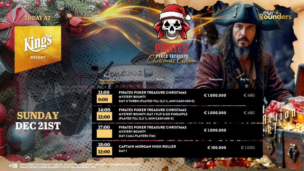 Der aktuelle Tourstopp der Česká Pokerová Tour (ČPT) findet im King’s Casino Prague statt. Das regelmäßige Festivalevent in der tschechischen Hauptstadt hat €40.000 an Preisgeldgarantie im Gepäck. Um die kann man an 3 Starttagen für ein Buy-In von jeweils €200 spielen. Dafür gibt es 50.000 Chips und 40 Minuten Spielzeit pro Blindlevel (15 im Turbo Flight). Die jeweils besten 15% qualifizieren sich für das Finale am Sonntag, das ab 16:00 Uhr im Hilton Hotel Prag ausgetragen wird, wo das King’s Casino beheimatet ist..