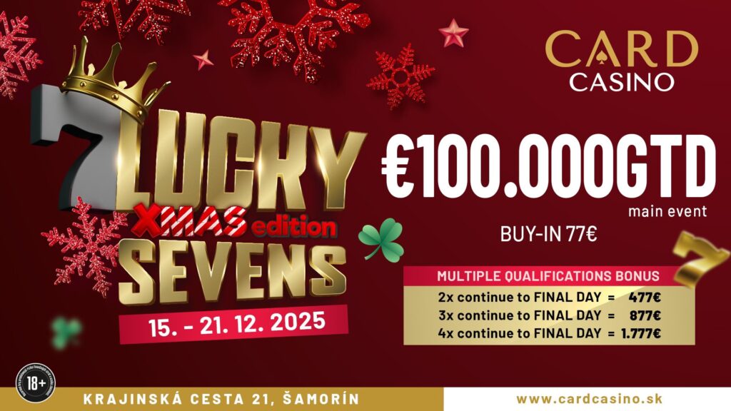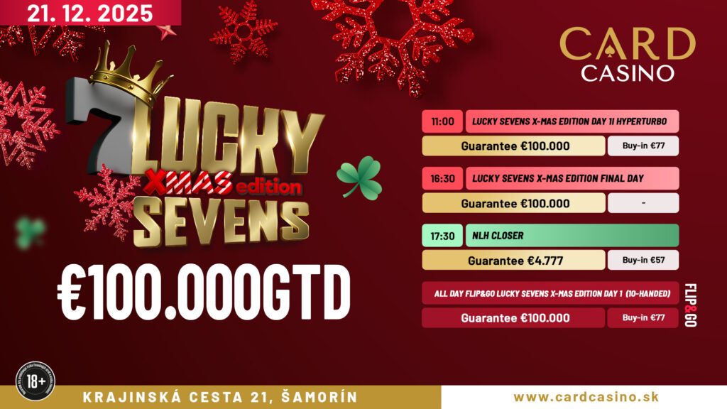 Am Samstag wurden die Flights 6 bis 8 von insgesamt 9 im Main Event der Lucky Sevens X-Mas Edition im Card Casino Samorin (vormals Card Casino Bratislava) ausgespielt. 43 Überlebende konnten den Sprung in das heutige Finals (ab 16:30 Uhr) und damit in das mindestens garantiert €100.000 umfassende Preisgeld schaffen. Weihnachtsgeld konnte sich gestern damit auch ein österreichisches Sextett sichern.
