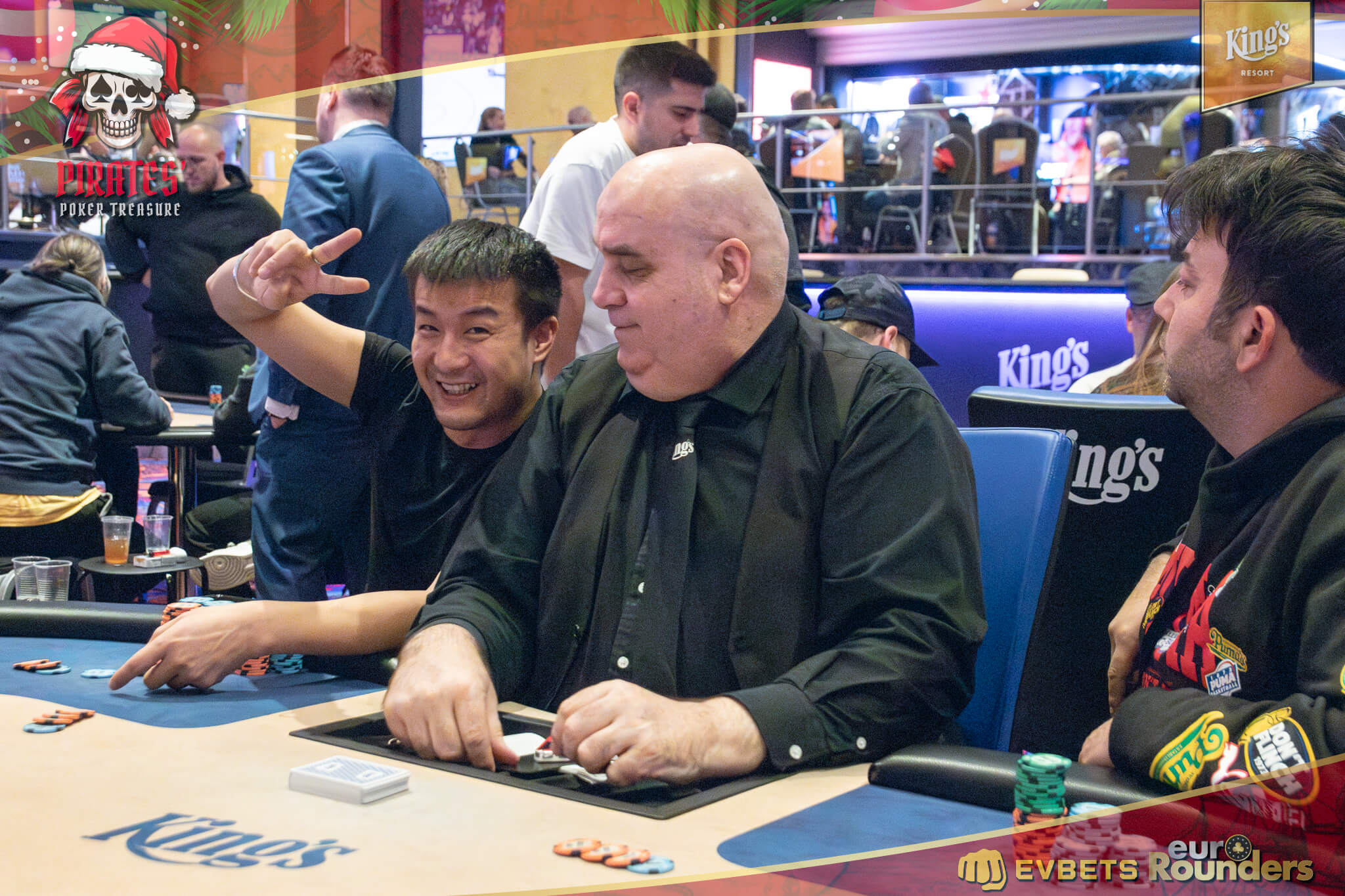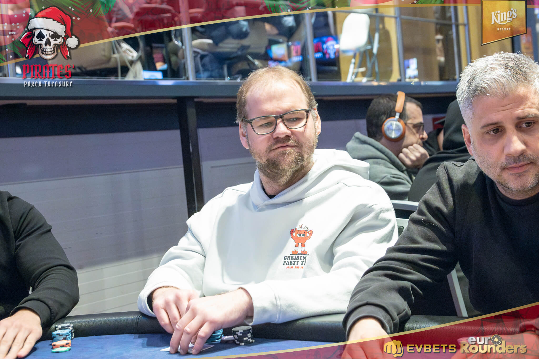 Das Pirates Poker Treasure Christmas Mystery Bounty Festival powered by euroRounders sah am Samstag 709 Entrys im King’s Resort Rozvadov. Trotz zweier passabel besuchter Starttage (1H, 1I) fehlen vor dem heutigen finalen Flight 1J noch rund 1.000 Entrys, um die Garantie von €1.000.000 zu knacken. Ansonsten wird es in Form von einigem Added Value fette Beute für die Freibeuter im Pokerroom King’s geben. Die gab es an Tag 1 bereits in Form des €600 Min-Cashes für 89 Überlebend. Die beiden erfolgreichsten Jetonsammler konnten sich außerdem den €1.150 Chipleader Bonus schnappen!