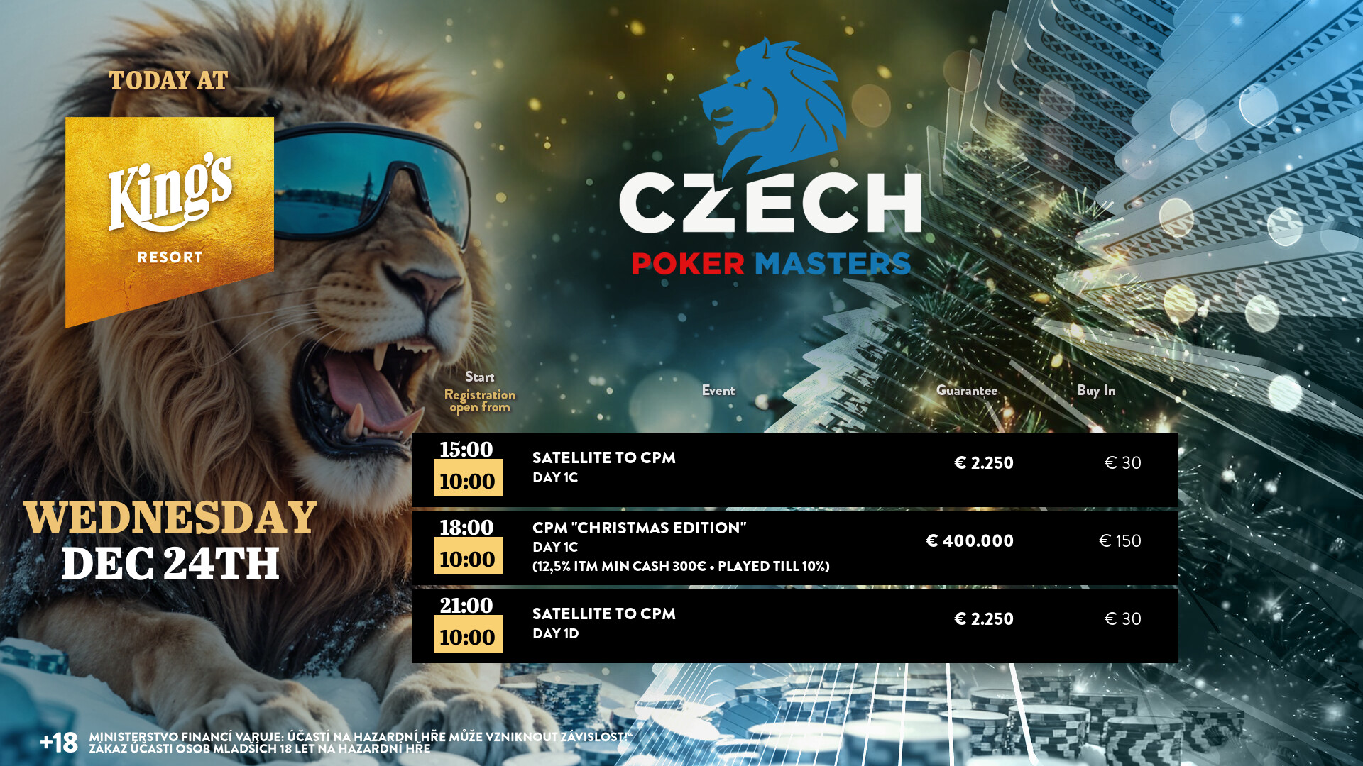 Im King’s Resort Rozvadov wurde am Tag vor Heiligabend der zweite Flight der Czech Poker Masters (CPM) „Christmas Edition“ gespielt!