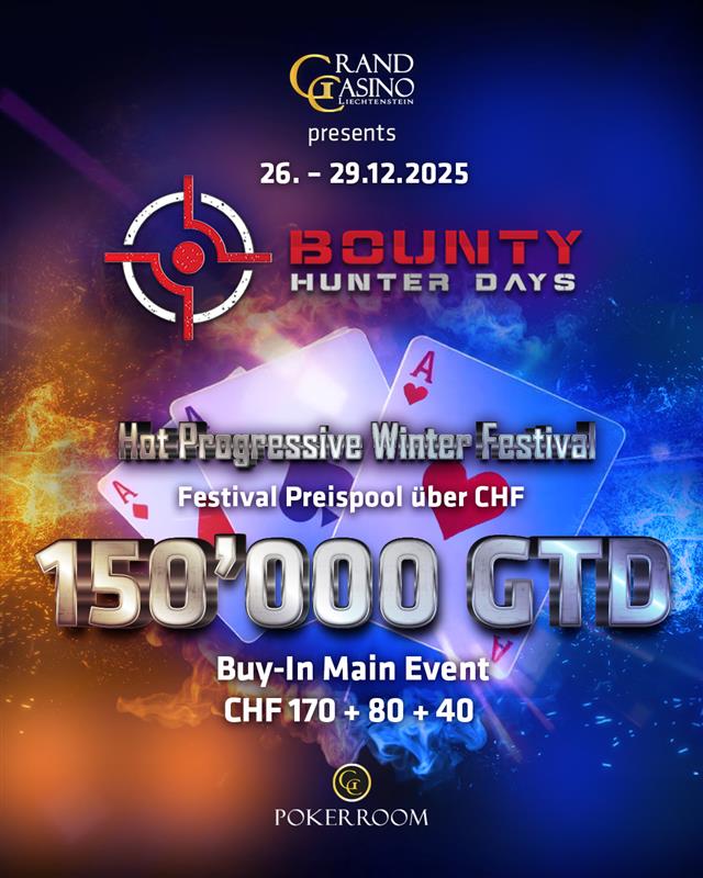 Im Grand Casino Liechtenstein (GCLI) fiel gestern der Startschuss für die Bounty Hunter Days mit dem Hot Progressive Winter Festival powered by Poker-Trip.de.