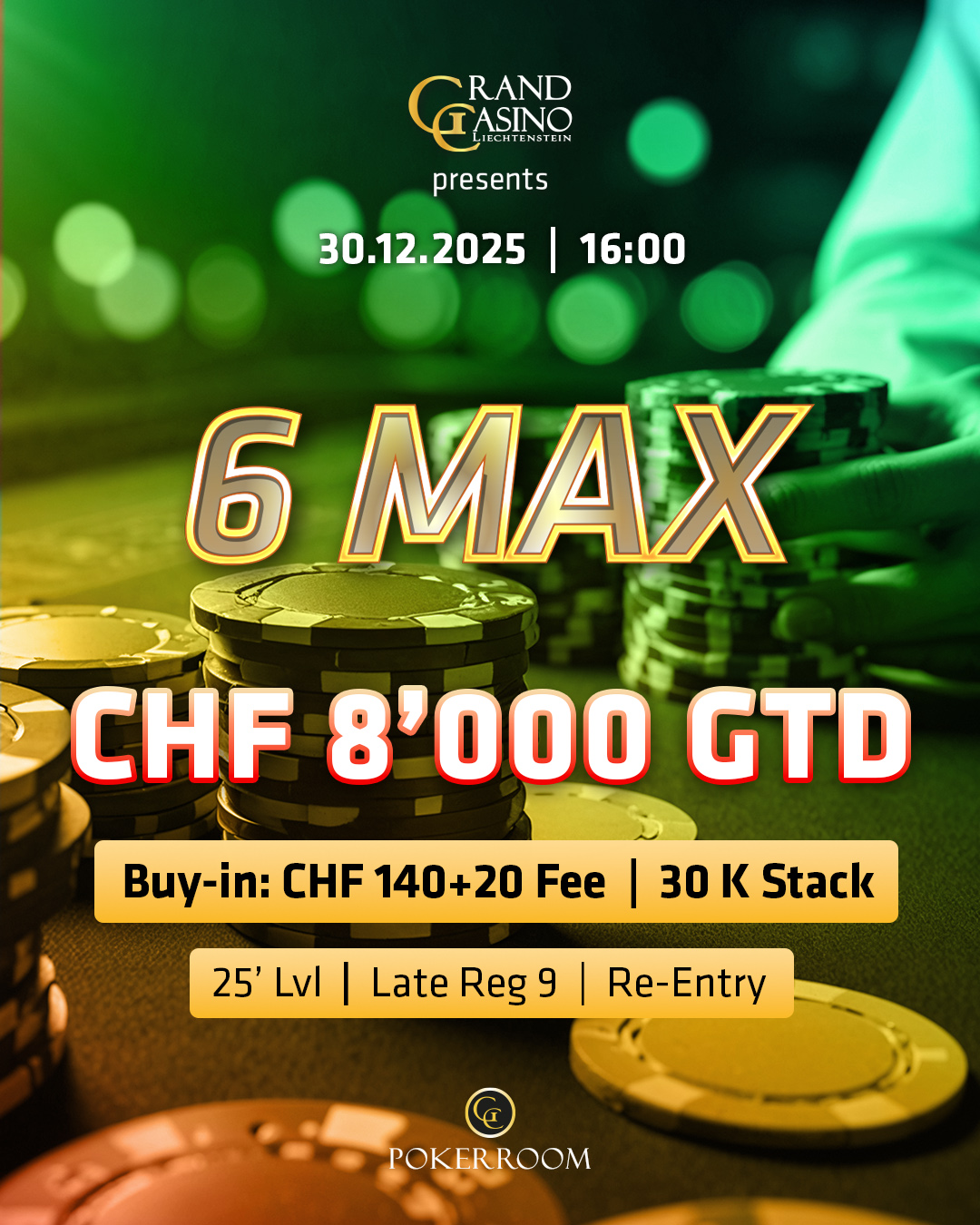 Neben Turnieren werden täglich von 17:00 bis 04:00 Uhr auch Cash Games in den Varianten NLH, PLO, STUD, OFC für alle Limits angeboten, startend ab CHF 1/3 (NLH) und CHF 1/1 (PLO).