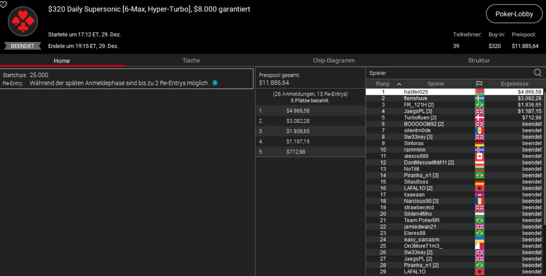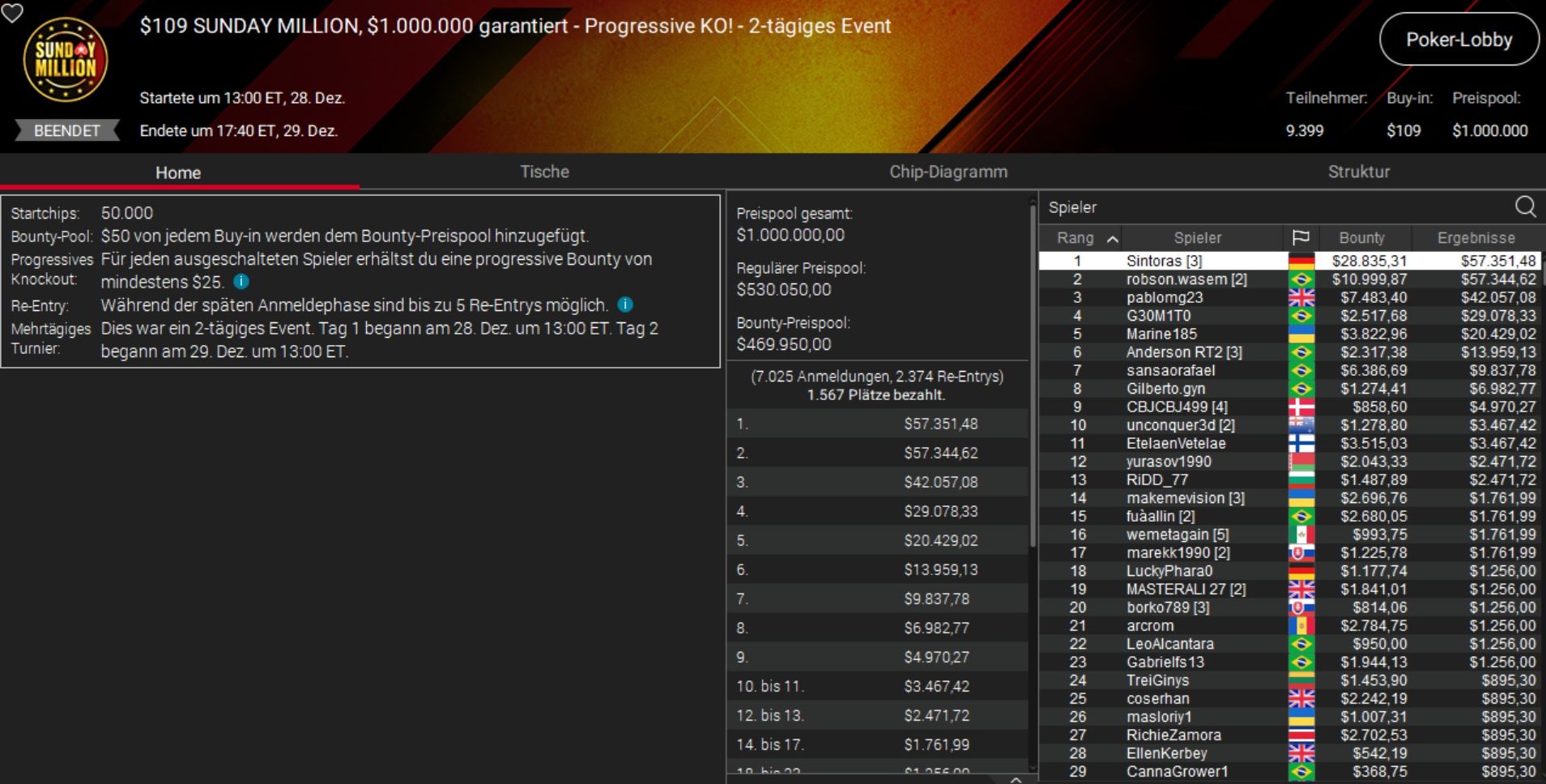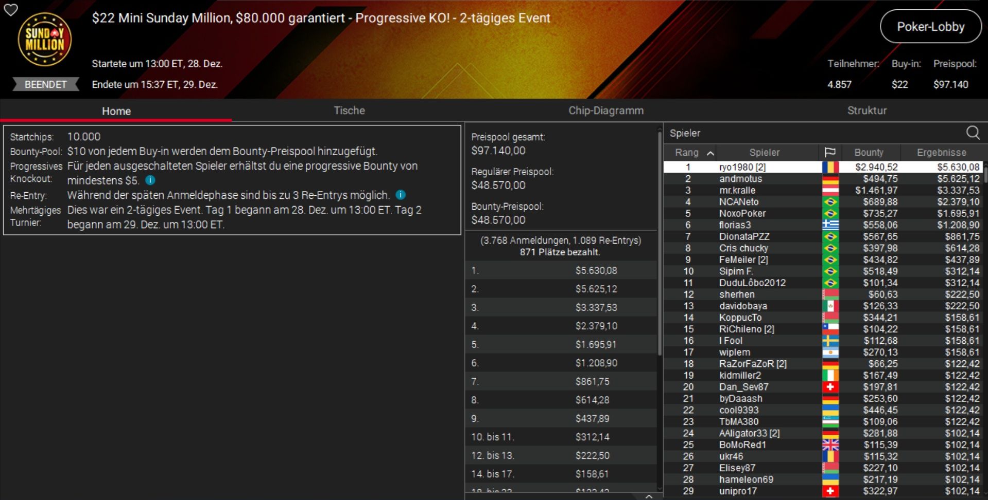 Und auch bei der Mini Sunday Million schnitten die DACH-Spieler sehr gut ab.