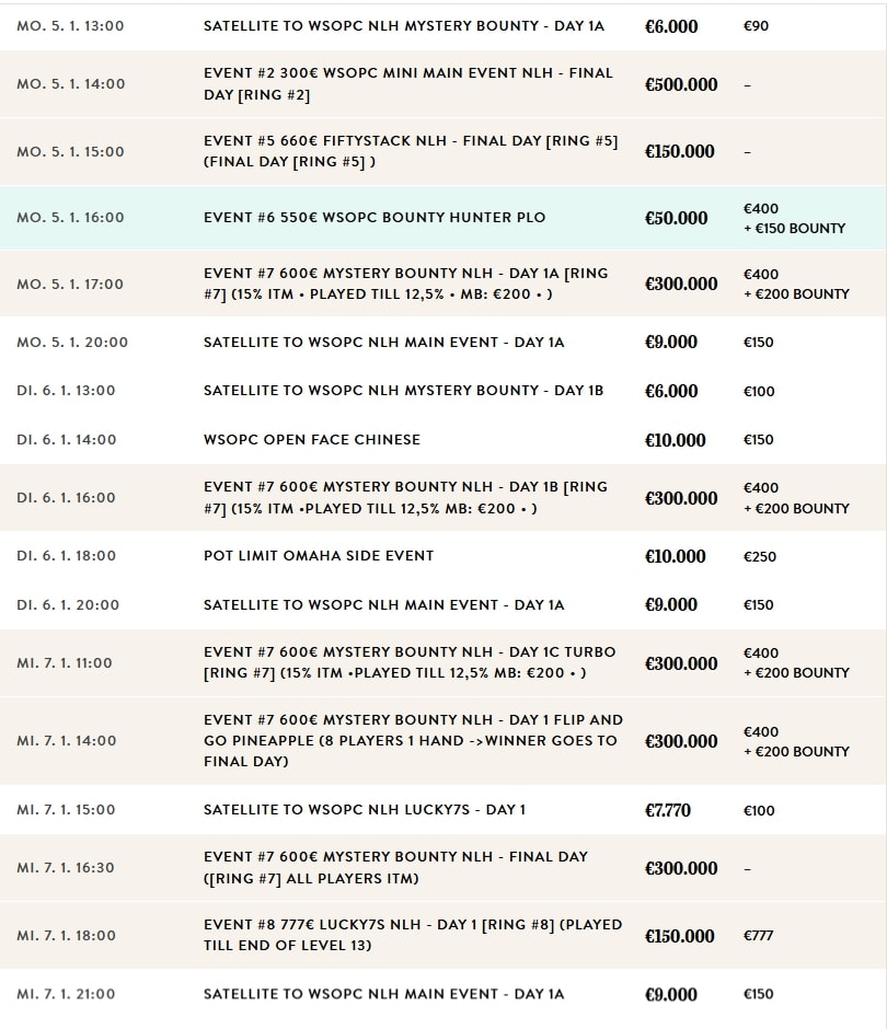 Event #1: €440 WSOPC 6-Max PLO Opener – Finale (€50.000 GTD)